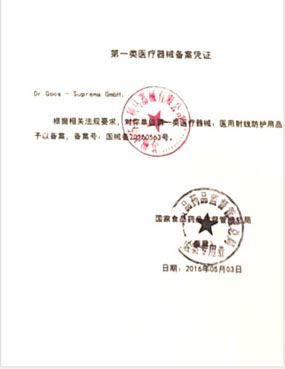 蘇州市蘇普利馬器械有限公司是專業(yè)從事醫(yī)用X射線防護(hù)系列用品、裝置、代理德國Dr.Goos-Suprema Gmbh.顧斯博士-蘇普利馬有限公司生產(chǎn)的原裝進(jìn)口鉛衣及醫(yī)用觀片燈的生產(chǎn)銷售企業(yè).生產(chǎn)的X射線防護(hù)圍裙均來自美國SHIELDING公司的最新型超薄型防護(hù)材料,,具有防護(hù)性能可靠、穿戴舒適、輕便柔軟、操作自如等諸多優(yōu)點.產(chǎn)品均通過相關(guān)X射線檢測機(jī)構(gòu)的檢測,達(dá)到產(chǎn)品標(biāo)準(zhǔn)的要求.X射線醫(yī)用膠片觀察燈。是采用全LFD燈光技術(shù)。具有重量輕,光源均勻,亮度高,無頻閃,不變型,使用壽命長等特點。均取得了生產(chǎn)許可及醫(yī)查看更多>>